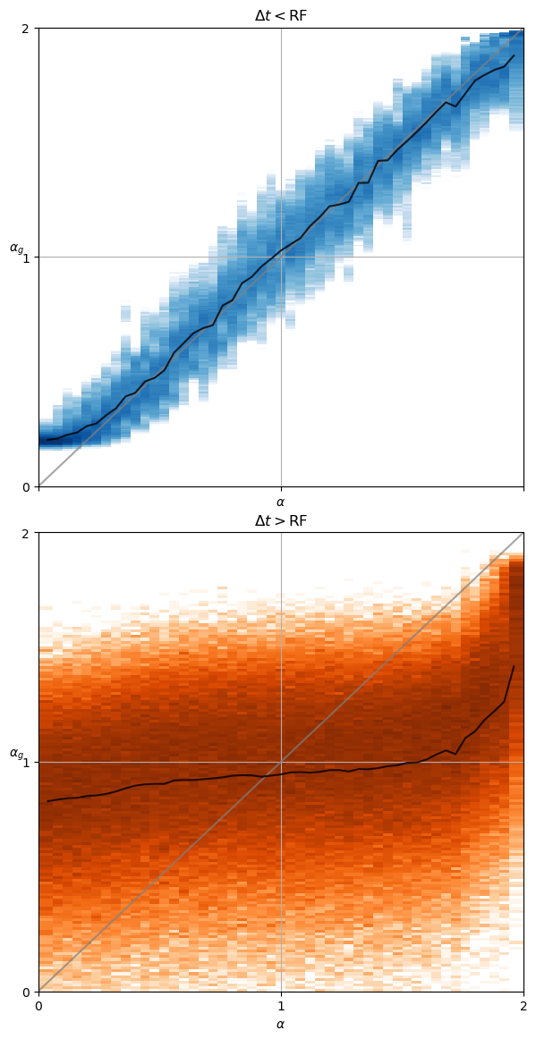 axs[1].set_title(r'$\Delta t>$RF');