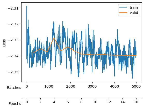 learn.loss_func.beta=6e-4; model_args.update(dict(beta=6e-4))learn.fit_one_cycle(16, lr_max=1e-3,)| epoch | train_loss | valid_loss | mix_gaussian_loss | kld | time |
